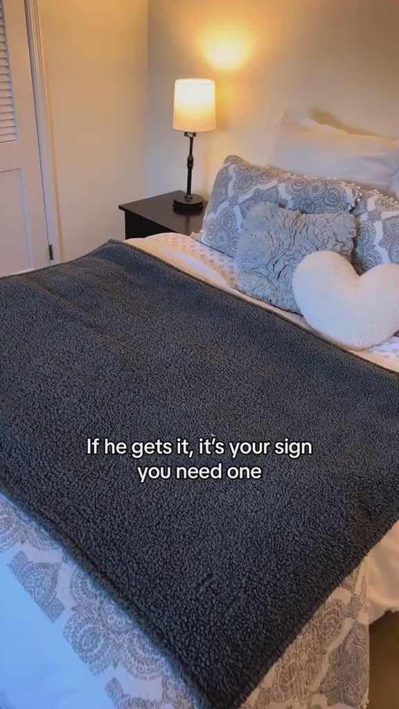 The Intimacy Blanket is generously sized to comfortably cover a bed or sofa, making it ideal for shared moments, lounging, or relaxing together.